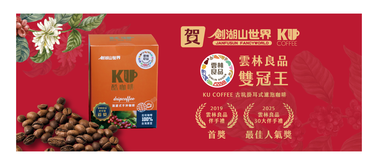 KU coffee古坑掛耳式濾泡咖啡參加2025雲林良品30大伴手禮資格榮獲最佳人氣獎。