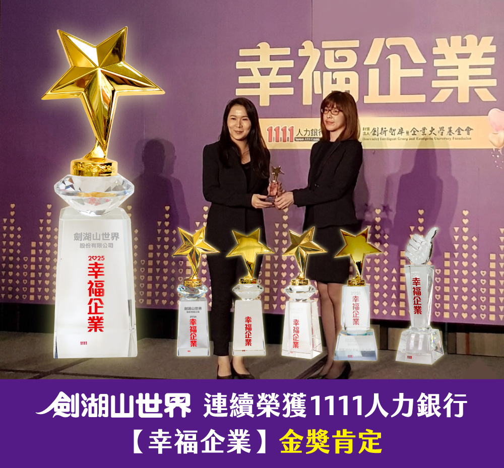 劍湖山世界於連續六屆榮獲1111人力銀行「幸福企業」金獎肯定