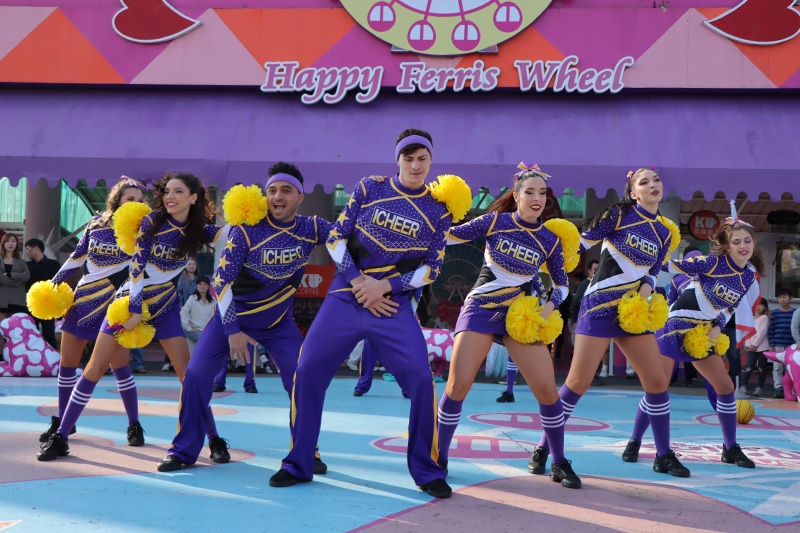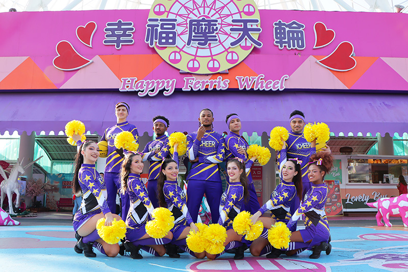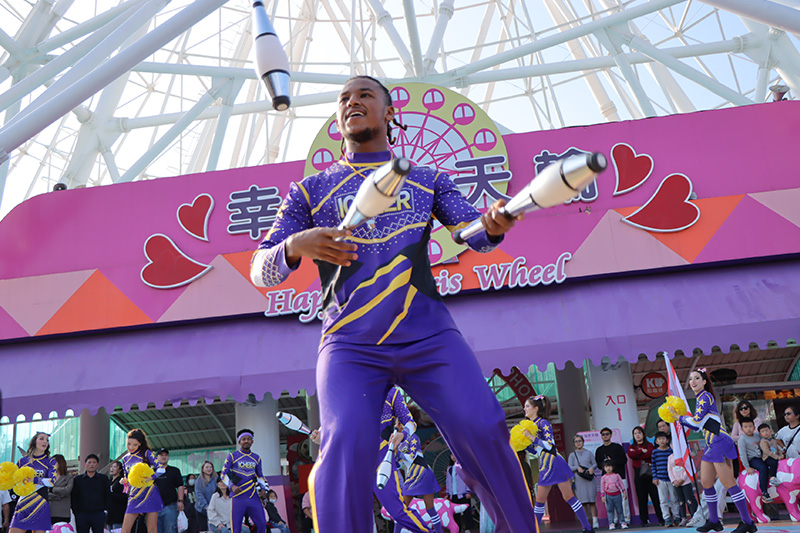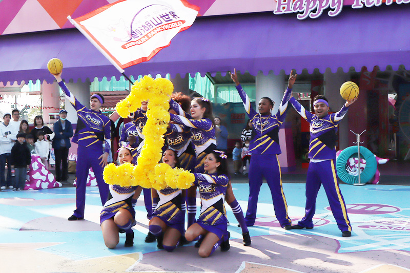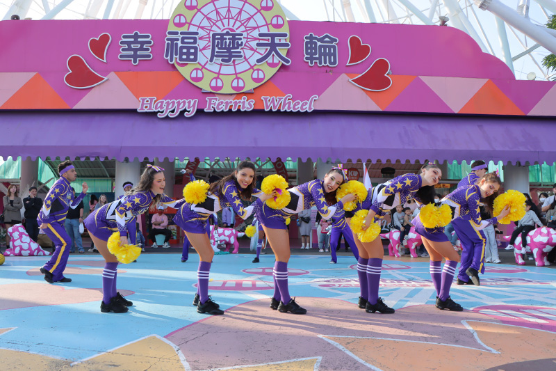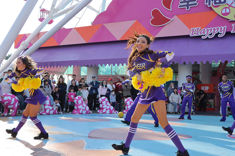 由熱血啦啦隊教練率領隊員華麗登場,應援團揮舞著繽紛彩球,以整齊有力的舞蹈搭配精彩特技,展現青春活力與團隊默契,邀請大家一起投入最熱情的應援時刻!