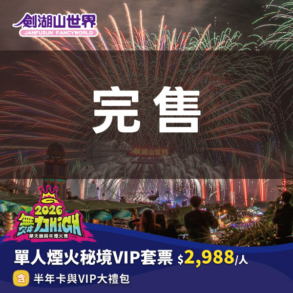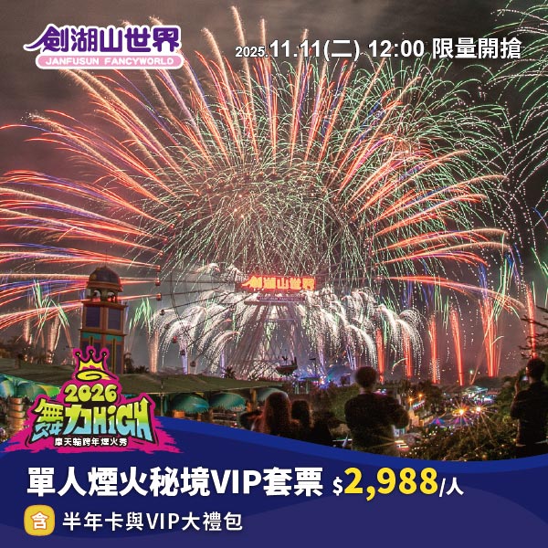 單人煙火秘境VIP套票-2026劍湖山世界摩天輪跨年煙火秀 最新票券