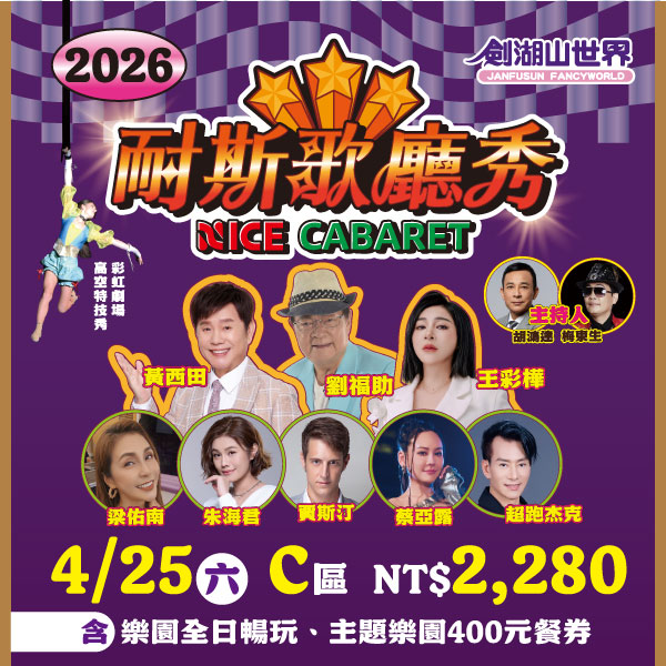 【耐斯歌廳秀】4月25日 C區門票,含樂園全日暢玩 最新票券