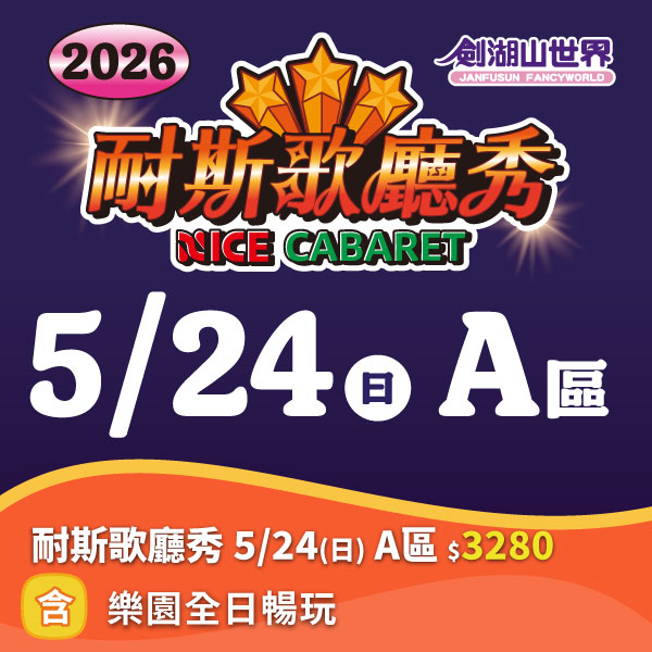 -票券內容:耐斯歌廳秀5月24日場次 A區門票 1張 ,劍湖山世界主題樂園 全票1張