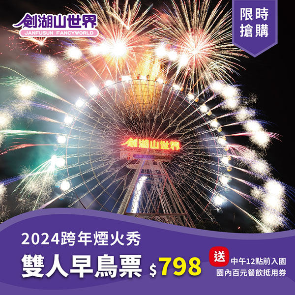 1、訂購票券以出示「已確認付款確認信件」及「身分證件」至劍湖山世界售票口取票,並不會寄送實體票券。