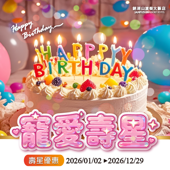 2025-09-15住宿優惠 【2025-2026】瘋跨年2026 #摩天輪煙火 2025-08-30住宿優惠 【2026】旺馬迎春 農曆春節住宿專案 2025-06-12住宿優惠 【2025】普發一萬 劍湖山送一萬✦* 【2025】普發一萬劍湖山送一萬✦* 專案日期:即日起至~2026/04/30止 2025-08-29住宿優惠 【2026】連假住宿優惠 |一泊一食 只要$4200 專案日期:元旦(2026/1/1)、2026/2/14~15 2025-08-28住宿優惠 【2025】粉絲日入住專案|兩人成行 只要$3099(含早餐) #指定日 放下工作,帶上快樂!指定日等你來Chill! 2025-09-08住宿優惠 【2025】劍湖山快樂送 3+1同行鬆久久 #3999 專案日期:2025/09/10-2025/12/30 2024-11-30住宿優惠 【2025年度住宿專案】一泊一食 X 兩人成行$4300元起 專案日期:2025年1月2日至12月30日 2025-12-13住宿優惠 【2026當月壽星】住宿專案 生日是一年一度的特別日子,來場獨特的住宿體驗! 專案日期:2026年1月2日至12月29日 2024-12-23住宿優惠 【2025】企業敬軍 ★ 國軍專屬住宿優惠 一泊一食最低每人$1800起 國軍專屬住宿優惠 2024-12-18住宿優惠 【2025】高年級旅遊 兩人成行NT$2800/房起 #2025限定 專案日期:自2025年1月2日至2025年12月30日 2025-09-08住宿優惠 【2025】酷奇親子房 兩人成行一泊3食再招待1位12歲以下兒童 兩人成行一泊3食,每房再招待1位12歲以下兒童 2025-12-05住宿優惠 【2026年度住宿專案】一泊一食 X 兩人成行$4300元起 專案日期:2026年1月2日至12月30日