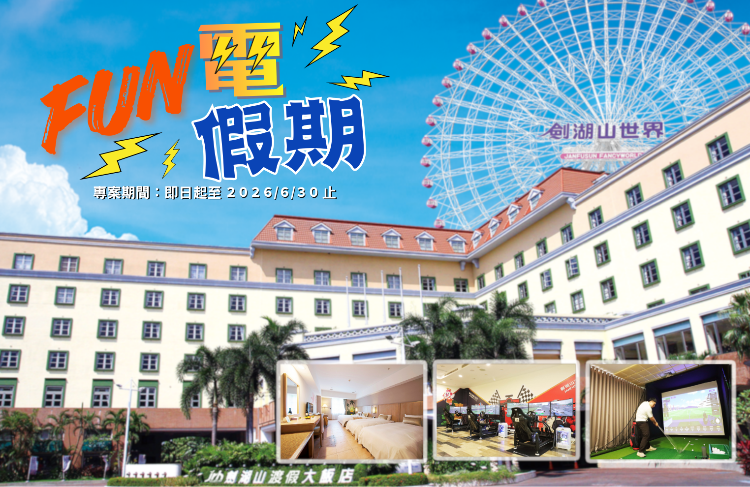 •《加碼贈送》每房再送【室內模擬高爾夫球30分鐘】+【賽車模擬30分鐘】。