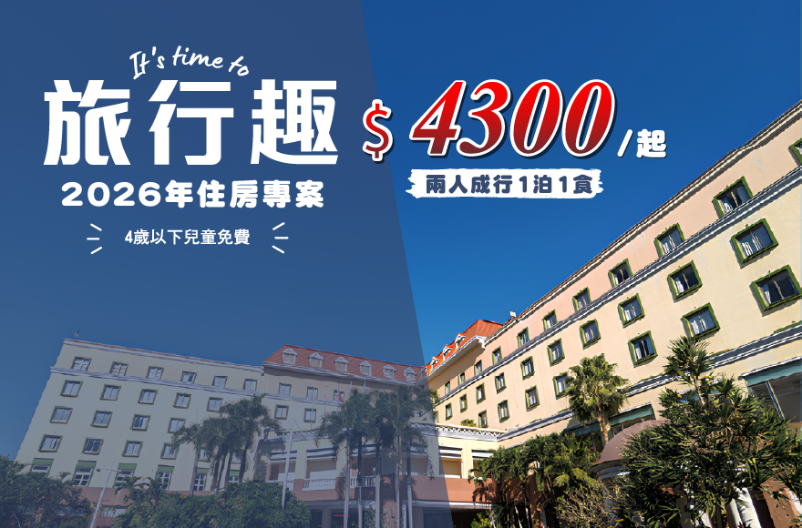 • 同房第3人起需加收費用,每房最多可入住4人(成人NT$1300/位、兒童NT$1100/位)。