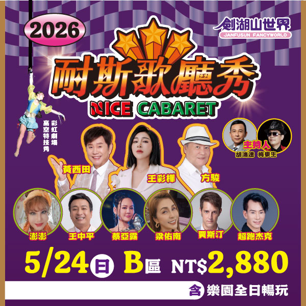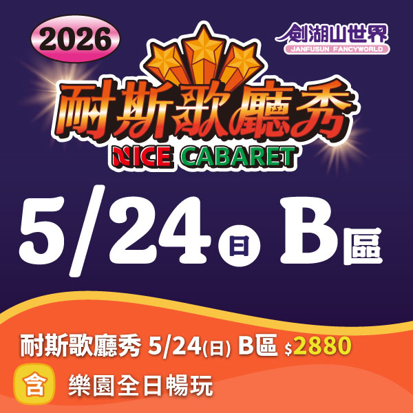 【耐斯歌廳秀】5月24日 B區門票,含樂園全日暢玩 最新票券